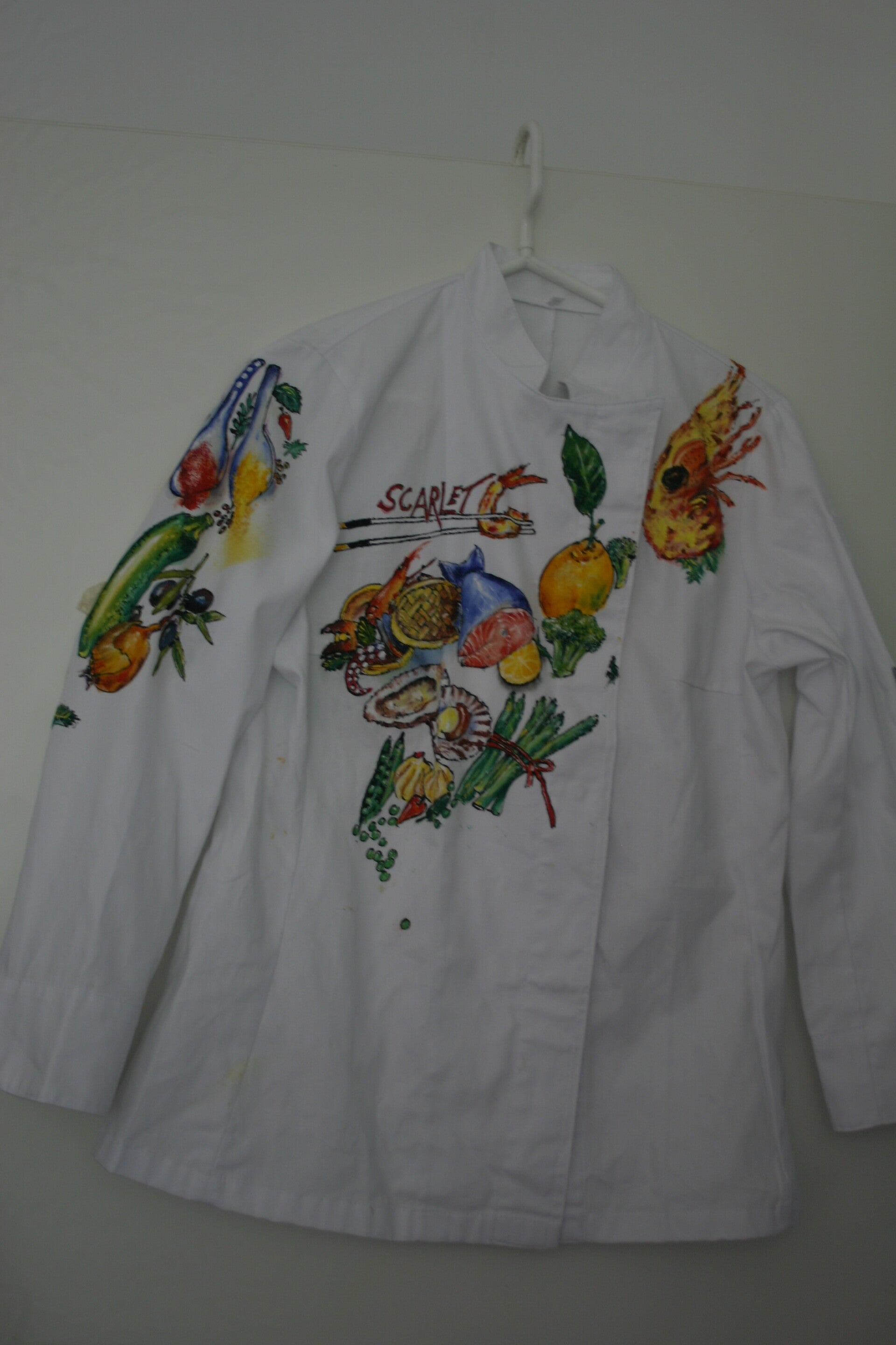 Zum bemalen der Kochjacken verwende ich hochwertige Stoffmalfarben die bei guter Pflege der Jacke viele Jahre frisch bleiben.